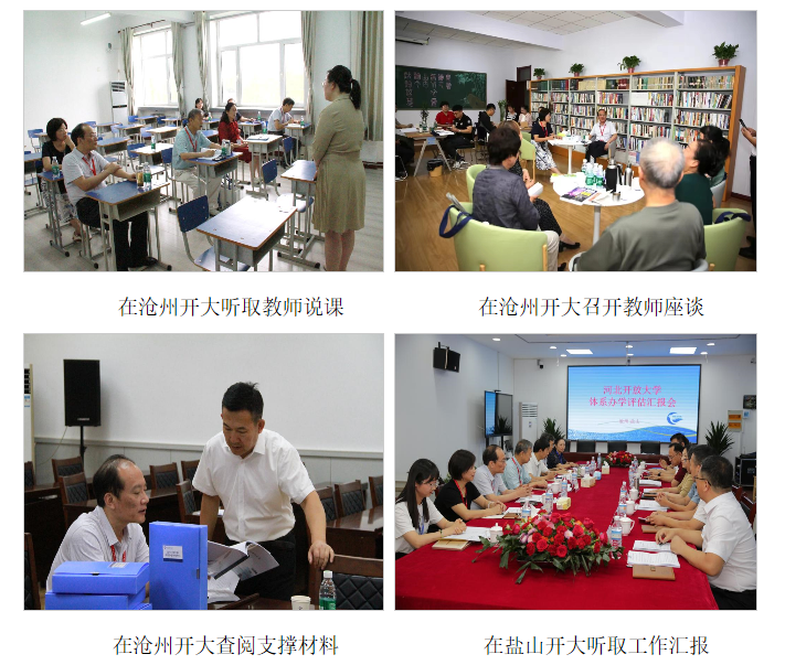 評估專家組依據《河北開放大學體系辦學評估指標》,通過聽取工作匯報,考察學校辦學條件,召開學生座談、教師及管理人員座談、個別訪談,現場聽評課,查閱支撐材料等環節,從辦學定位、體系辦學、條件保障、學歷教育、非學歷教育、質量管理、創新與服務等方面,對2所市級開放大學進行了評估,并分別對懷來開放大學、鹽山開放大學進行了延伸考察,為參評學校“體檢把脈”。