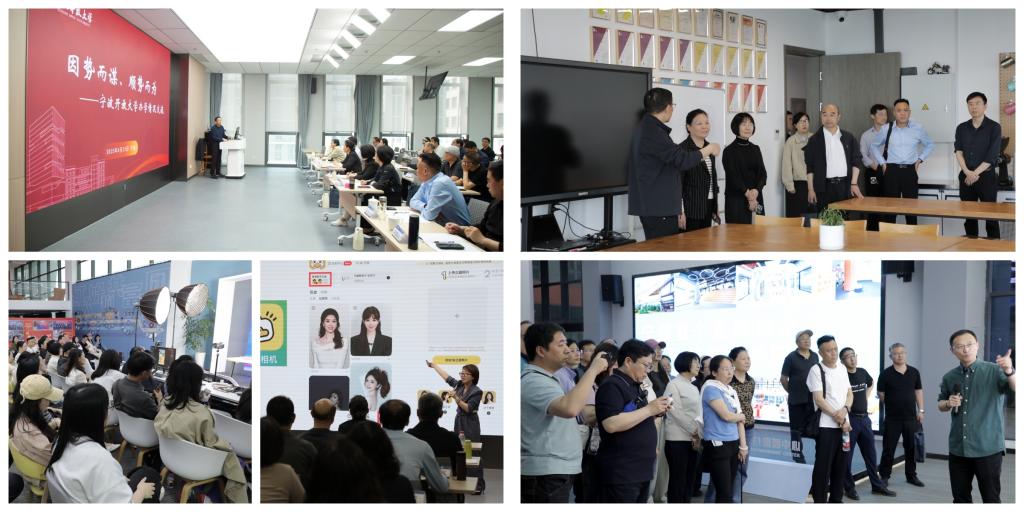 本次培訓活動的課程采用多元化形式展開,涵蓋新技術賦能資源建設專題講座、AI作品征集獲獎案例分享交流、余姚學院實地研學考察,以及直播基地實戰演練活動等模塊。特邀寧波開放大學黨委委員、副校長陳曙以《因勢而謀、順勢而為》為主題系統介紹了寧波開放大學辦學特色及發展戰略。全體學員在理論+實踐的課程模式下,深入學習,積極實踐,實現了新技術賦能下的多維思想碰撞。