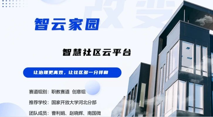 在剛剛閉幕的2024年河北省大學生創新大賽職教賽道決賽中,邢臺開放大學代表河北開放大學參賽的曹利娟同學的創新項目《智云家園——智慧社區云平臺》,在與眾多全日制大學生現場角逐中脫穎而出,位列240個獲獎項目的第45名,一舉斬獲銀獎!本次創新大賽河北開放大學共有四所市級開放大學進入決賽,最終獲得兩名銀獎和兩名銅獎,其中邢臺開放大學創新項目最終名次居河北開放大學體系內首位。