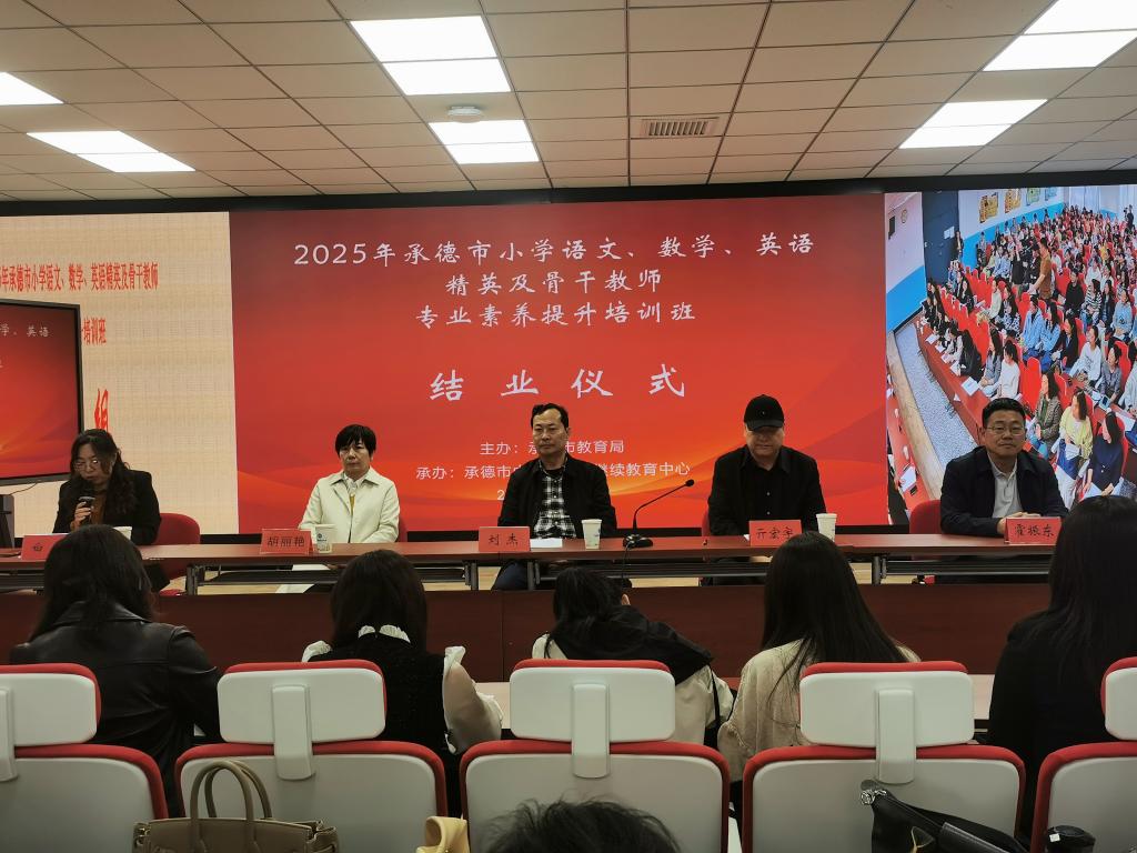 為貫徹落實《中共中央 國務(wù)院關(guān)于全面深化新時代教師隊伍建設(shè)改革的意見》,進(jìn)一步推動《新時代基礎(chǔ)教育強師計劃》執(zhí)行落地見實效,引領(lǐng)教師隊伍專業(yè)化發(fā)展,4月7日至18日,由承德市教育局主辦、承德開放大學(xué)(承德市中小學(xué)教師繼續(xù)教育中心)承辦的2025年承德市小學(xué)、初中語文、數(shù)學(xué)、英語精英及骨干教師專業(yè)素養(yǎng)提升培訓(xùn)班圓滿結(jié)束。來自全市中小學(xué)的300名語文、數(shù)學(xué)、英語精英及骨干教師齊聚一堂,通過專題講座、案例研討、示范課觀摩、學(xué)習(xí)沙龍等形式,共研育人新理念,共探教學(xué)新路徑。培訓(xùn)班開班儀式上,承德市教育局副局長雒文悅向參訓(xùn)教師介紹了本次培訓(xùn)的設(shè)計思路與課程安排,提出了培訓(xùn)學(xué)習(xí)的具體要求,對參訓(xùn)學(xué)員提出做好示范表率,扎實學(xué)養(yǎng),提升教育科研和教學(xué)能力的期望。承德市中小學(xué)教師繼續(xù)教育中心負(fù)責(zé)人對培訓(xùn)中的紀(jì)律、考核及安全工作提出了具體要求。