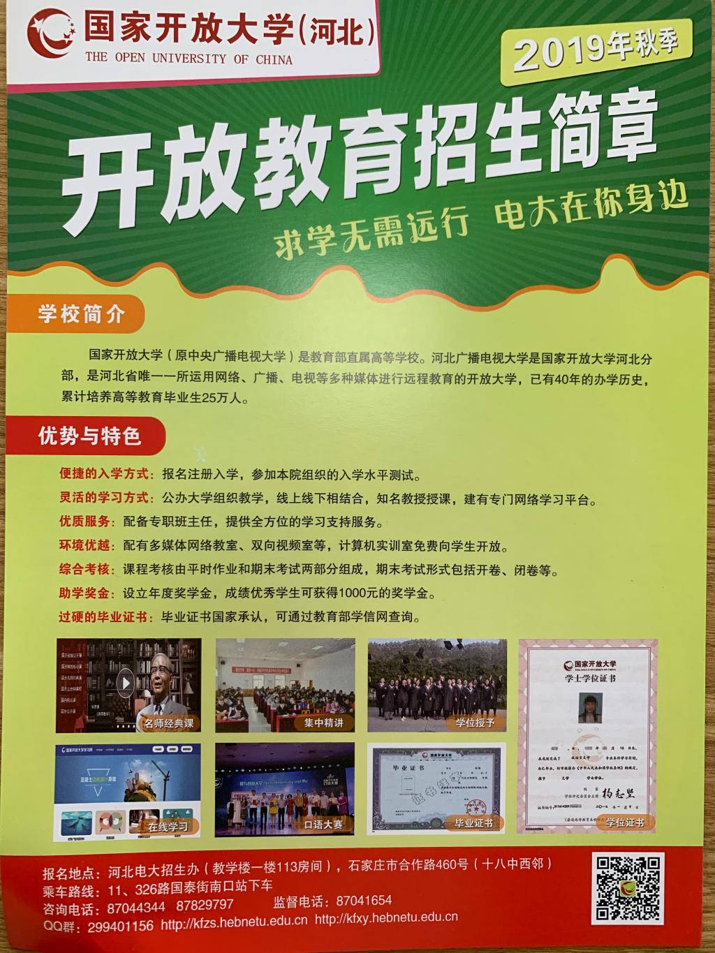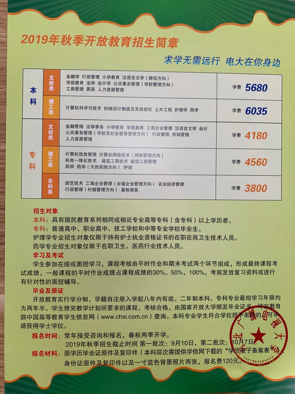 (1)2019年秋季開放教育招生簡章: