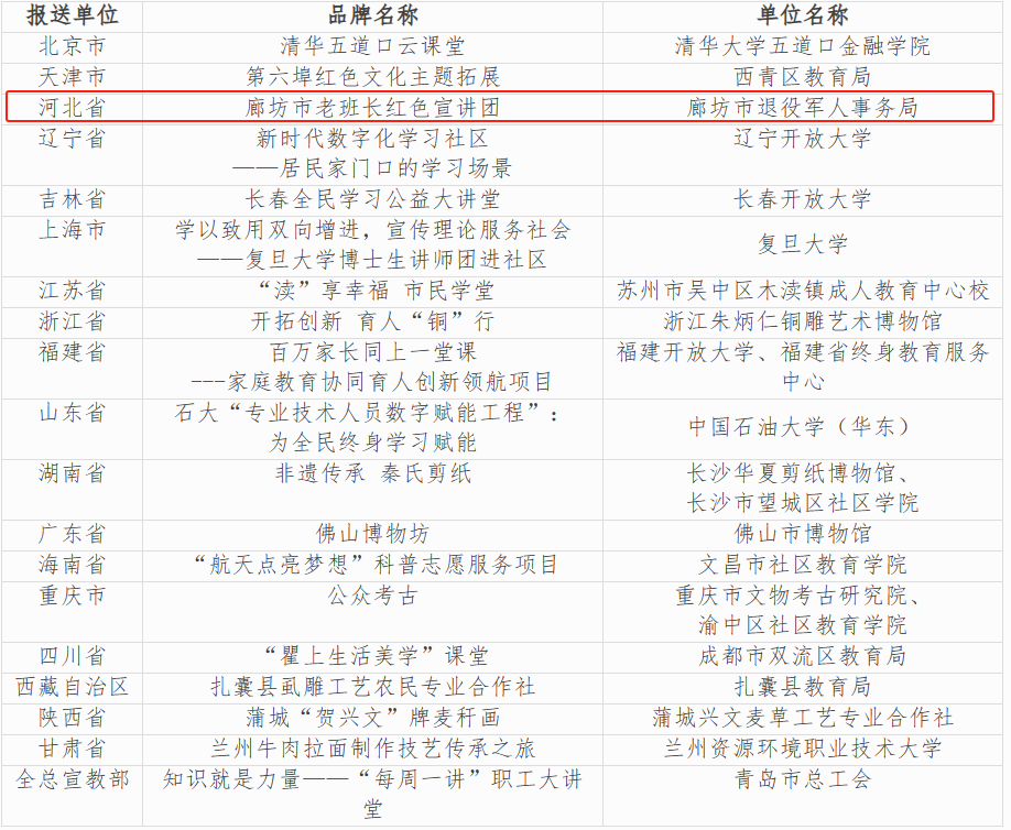 2024年河北省新時代“終身學習品牌項目”宣傳推介名單